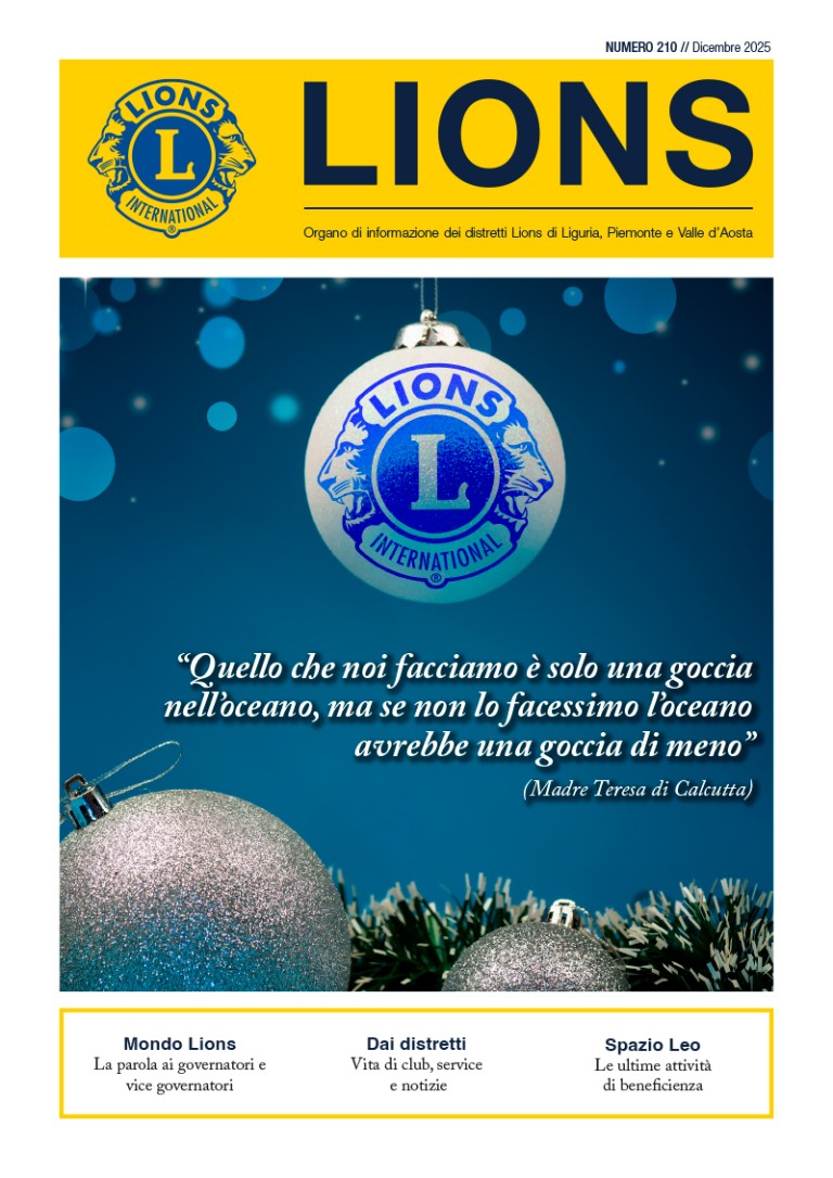 di “The International Association of Lions Clubs” (Lions Clubs International) inviato in abbonamento a tutti i soci Lions di Liguria, Piemonte e Valle d’Aosta.